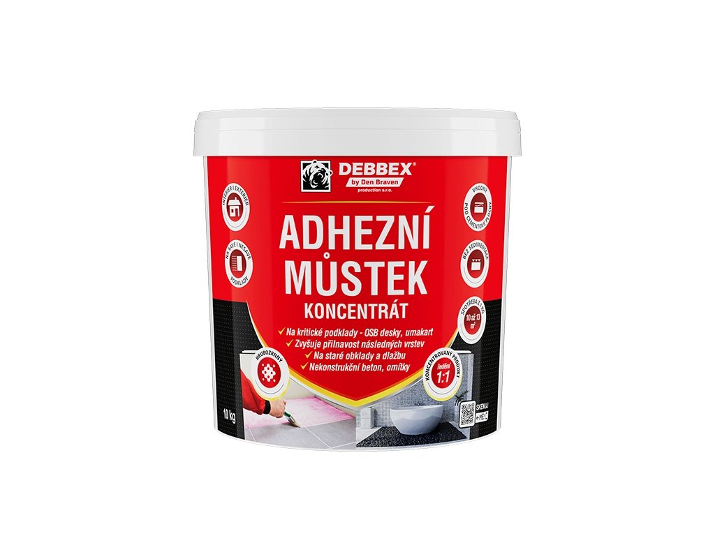 Adhézny mostík je jednozložkový bezrozpúšťadlový náter, ktorý je možno použiť v interiéroch i exteriéroch na vyzreté omietky, nekonštrukčný betón, sklenené tapety, drevené, papierové, sadrokartónové povrchy na drevotriesku, na OSB dosky, umakart, obklady a dlažby a pod. Jedná sa o penetračný a spevňujúci podkladový náter určený ako prvý náter všetkých nasiakavých i nenasiakavých stavebných materiálov, ktoré sú následne upravované stierkami, akrylátovými farbami, omietkami atď. Dá sa použiť samostatne pre spevnenie a zvýšenie hydrofobicity povrchu.