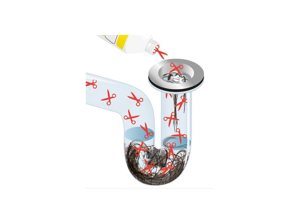 Prostriedok na vyčistenie odtokov od upchatých vlasov pripravený na okamžité použitie