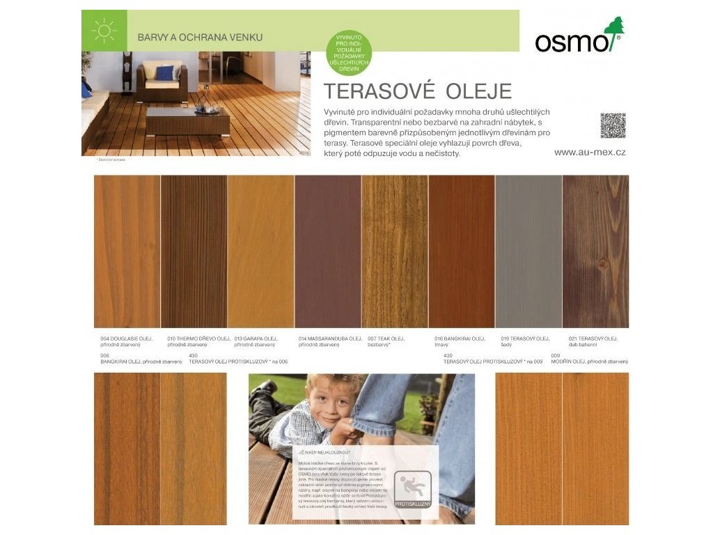 OSMO – TERASOVÝ OLEJ slúži k ochrane a údržbe drevených terás, záhradného nábytku a pohľadových zábran z ihličnatých a ušľachtilých drevín.