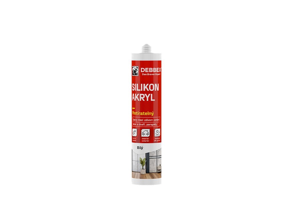 Pre interiéry a exteriéry. Opravy trhlín a prasklín v omietke, murive, dreve, betóne. Tmelenie spojovacích škár medzi rámami okien, dverí a murivom. Tmelenie okenných parapetov, škár medzi schodiskom a murivom. Tmelenie titán-zinkových parapetov a muriva. Silikón akrylový tmel je v transparentnej verzii pri aplikácii biely a počas schnutia sa stáva transparentným.